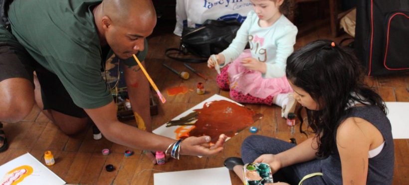 Eu quase não acreditei, porque normalmente sou eu que faço essa proposta nos lugares onde vou. Depois que ele falou, não pensei duas vezes e logo fui ajeitando os materiais para todos desenharem.